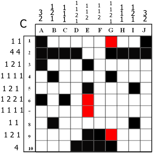 That is incorrect Ginger! If E4 had been filled it would have been 3 2 but it is 1 1 2 meaning the first two filled squares aren't touching.