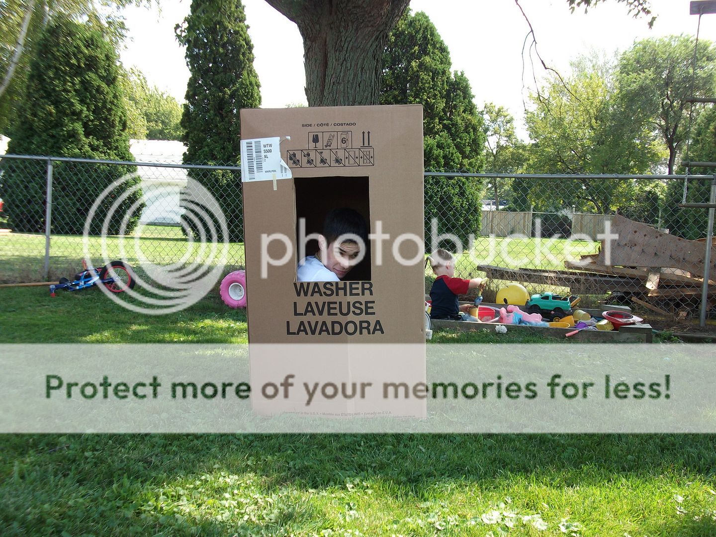 He's good with kids. My niece and nephew love him, so whenever we're at my sisters, or whenever they're here, they always want to play with him. That box was just a fort/house of sorts. He had to be in it because my niece ordered him to be in there. She was throwing grass at him and putting it in his hair for a good half hour. xD | ||||