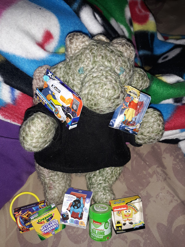 Derpy waddles in, arms full of toys and triumphantly deposits them in the middle of the floor. "Santa came!" He announces happily.