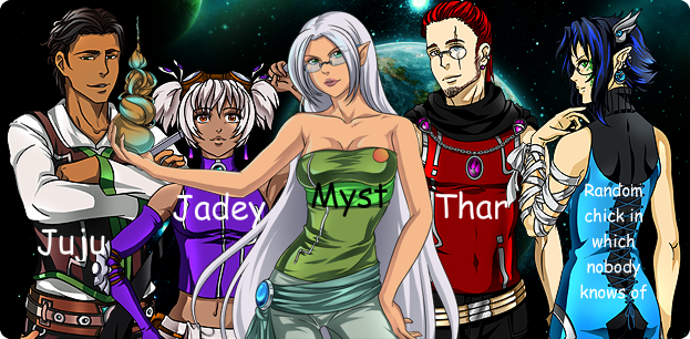 Picture: 1) yup I agree lol 2) I didn't immediately think of Jadey but she does look like a rambly says-what's-on-her-mind-and-hope-no-one-hates-her kind of gal ;p 3) Who is Myst? ^^; 4)Thar, I don't know him well enough yet but I think I recall he likes red. But then so does Dreccas. 5) lol poor "random chick in which nobody knows of" xD The blue color isn't really right but she reminds me of Chai a little bit by the face