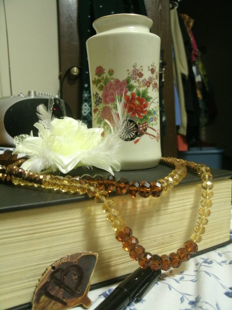 I'm a dog fiend, so my house is full of stuff. From where I am sitting right now I can see...one Pekinese statuette, Cavalier beanie baby and shot glass, English Cocker Spaniel plate, 3 miscellaneous stuffed dogs, Pongo (he was wearing my umbrella hat), tiny basset hound ornament, 2 stuffed labs (one black, one yellow), and one cavalier painting. I'm not about to take *that* outside though.