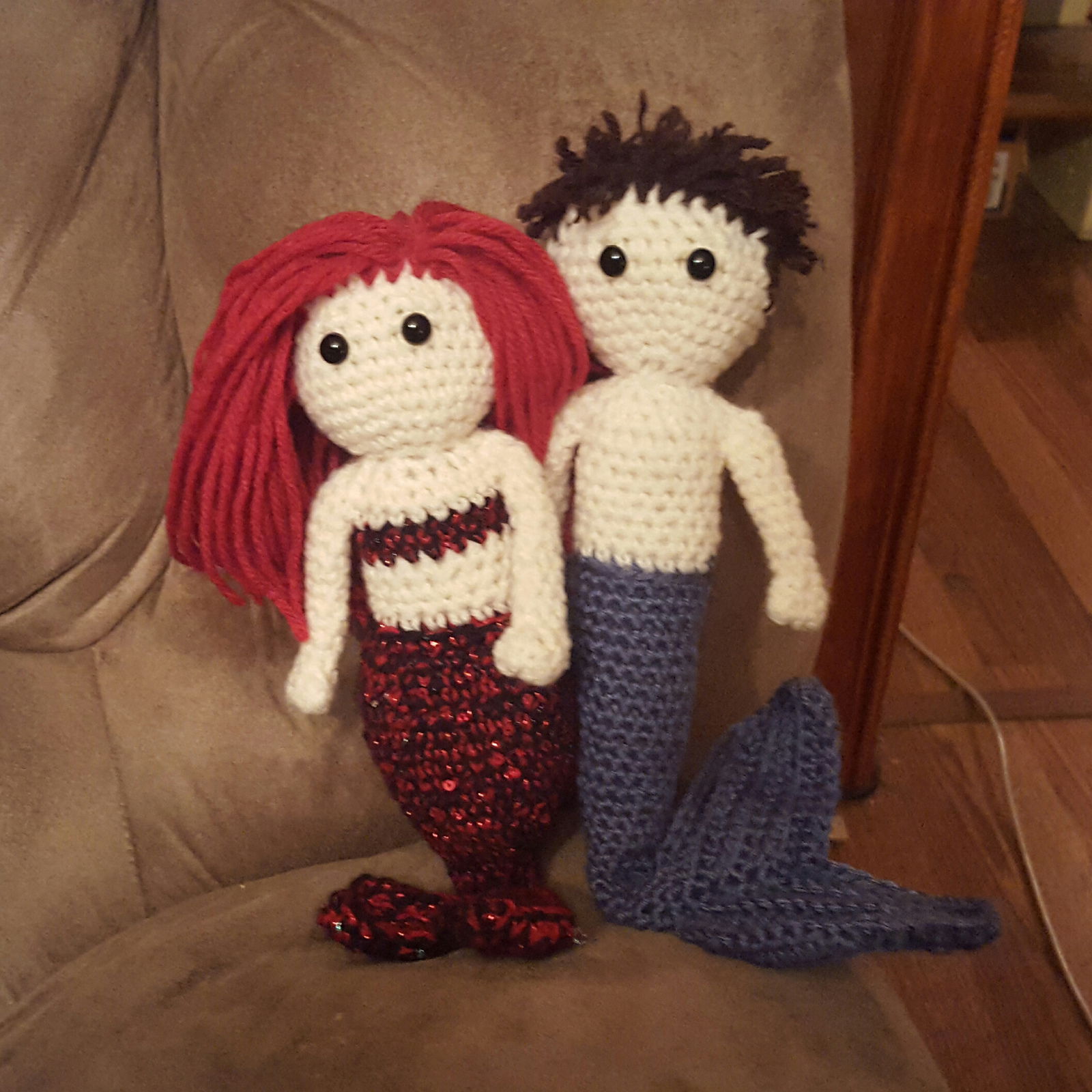 Those crochet dolls look amazing, I especially like shark boy and mermaid girl. Do you follow a certain pattern for them or is it entirely your own design?