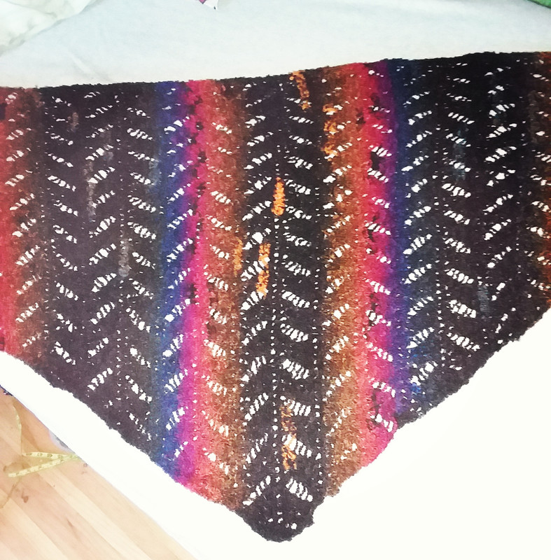 i finished a shawl. i call this a Morpho Shawl, like the Morpho Butterfly