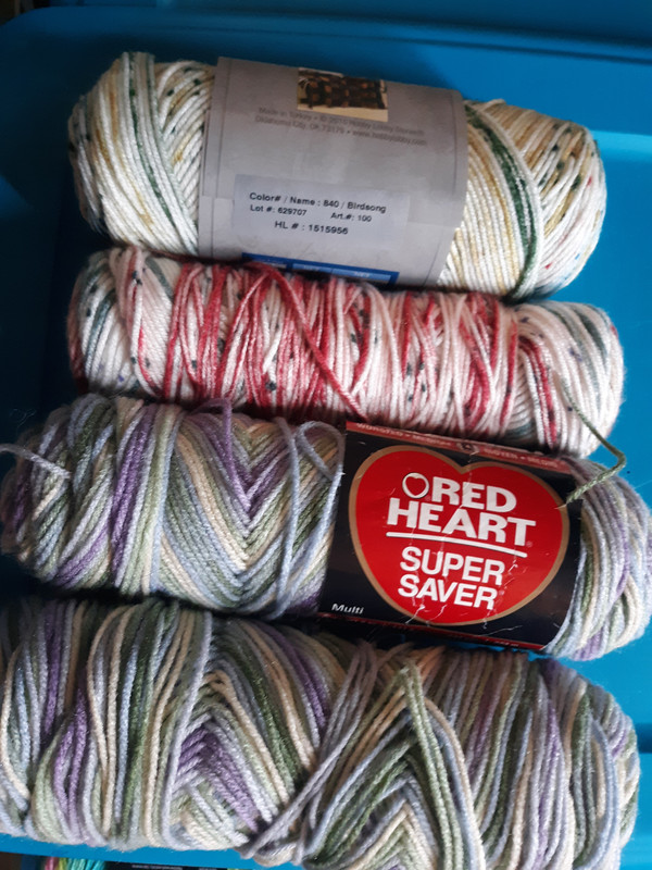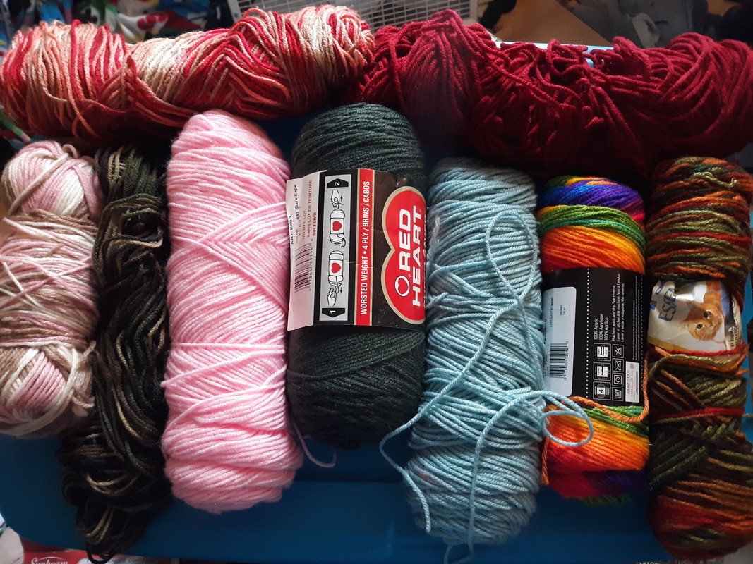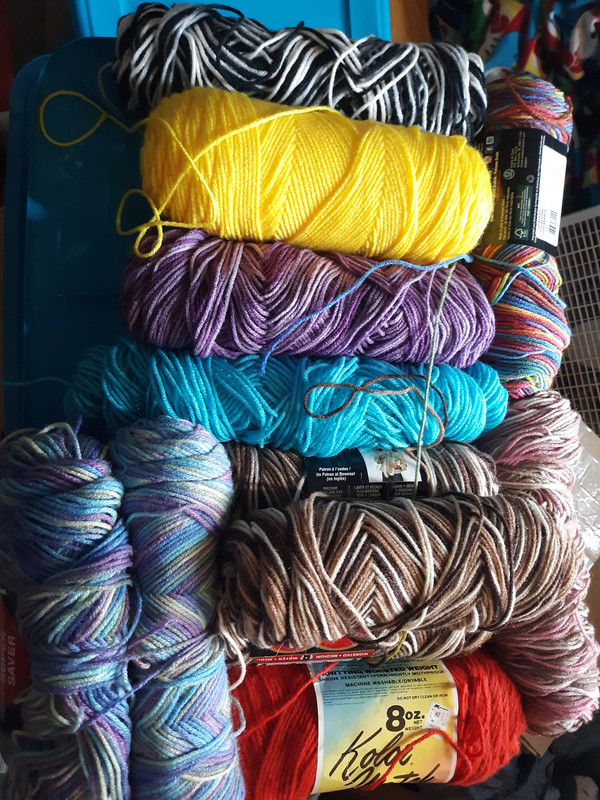 Tam: You can absolutely have as many as you want. I'd just be taking them to Goodwill otherwise. I'll have to sort through the rest of my yarn soon and see what else I can pull. XD The ones pictured were literally only from 3 of my tubs in the closet (the other 3 yarn tubs are yarn cakes and yarns I plan to keep so I didn't need to pull from those), but I still have several trunks in the livingroom to clean out and a few drawers as well. ![]()