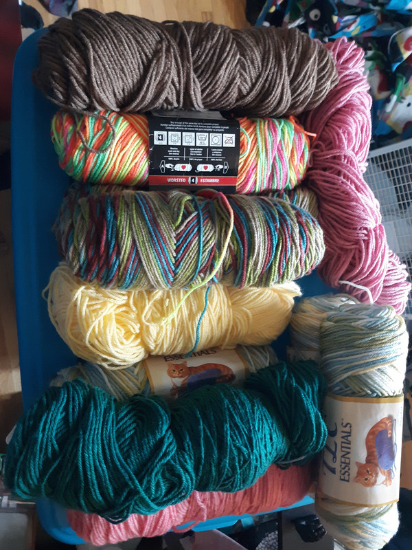 Living in an apartment (with pets) can be difficult when you want to do certain crafts as it makes it harder to test stuff (especially resin-type stuff that has a lot of fumes). XP Tam: These are the yarns I've pulled out of the stash today, I definitely have more to pull and take pics of, but you can have any of these that you want. ![]()