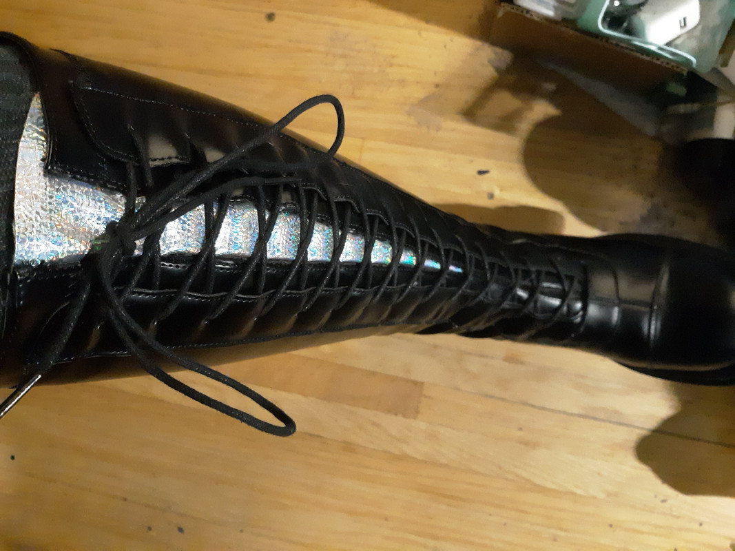 I bought the silver holo vinyl for boot tongues last night. Was supposed to have today off and was gonna try to get the boots done, but got stuck working all day instead. XP So I'm gonna try to stay focused after work and at least get the pieces cut out (as well as do like 5 other things) and then stitch them in tomorrow after work. Idk if I'll wear them for Halloween, but I'd like to at least be able to try them on with the outfit to see how they look. List of things to do by tomorrow night: 3. Make 1 face mask 4. Cut boot tongues out. 5. Sew boot tongues in. 7. Lint roll dress ...I think that's everything. Hopefully I can get it all done in the approx 8 hours total I'll have between the 2 days. ![]()
