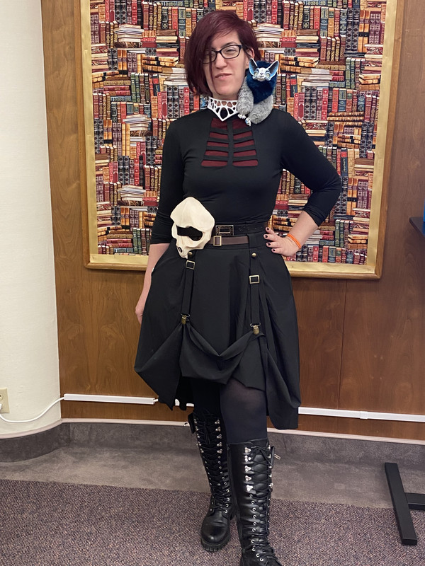Also...Happy Halloween! About half of my costume had to be improvised because stuff didn't arrive in time, but I pulled it off somehow and, though I doubt most people's first thought is "necromancer" it still is very dark and witchy so it works. ![]() | ||||