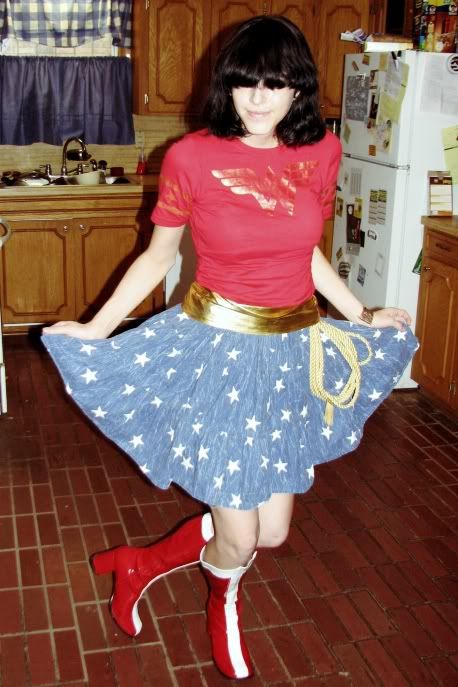 I have a pic of my Wonder Woman costume, but it's a little silly; it was one I was sending my Mom.